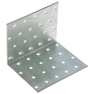Уголок изготовлен из оцинкованной стали методом холодной штамповки. Согнут под прямым углом, имеет отверстия по всей длине диаметром 5 мм (для шурупов или гвоздей).