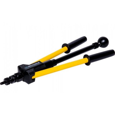 Двуручный заклепочник имеет эргономичные рукоятки из высококачественной стали с резиновым покрытием. Он легкий (всего 1,15 кг) и компактный (390х145 мм), что делает его удобным для работы в любых условиях.